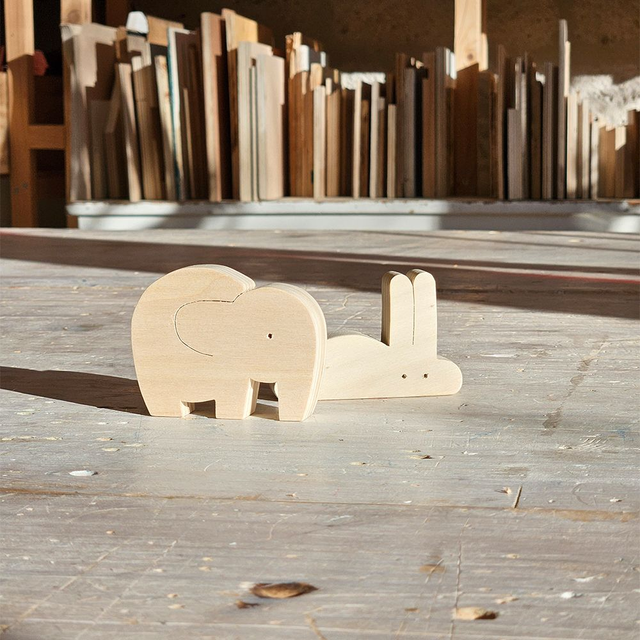 Figurine d'éléphant en bois de reemploi, contreplaqué peuplier 18mm, vernis norme jouet.